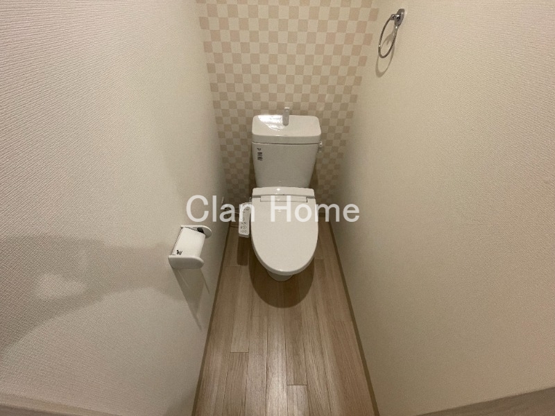 アクセントクロスがオシャレなトイレにはウォシュレットも付いており機能面でも十分な仕様となっております。広さもあるので圧迫感も少なそうなのもいいですね。