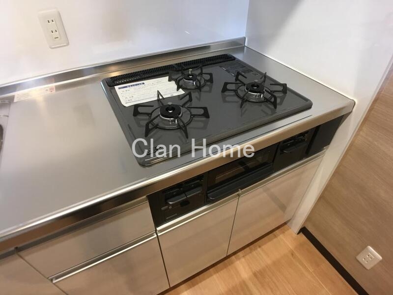 グリル付き3口ガスコンロのシステムキッチンには背面に収納付きのカウンターがございます。お料理の配膳やバーのようにカウンターでお酒を飲むのも雰囲気があっていいですね。収納も多いキッチンですので、シンプルにお料理をされる方に嬉しいキッチンではないでしょうか。